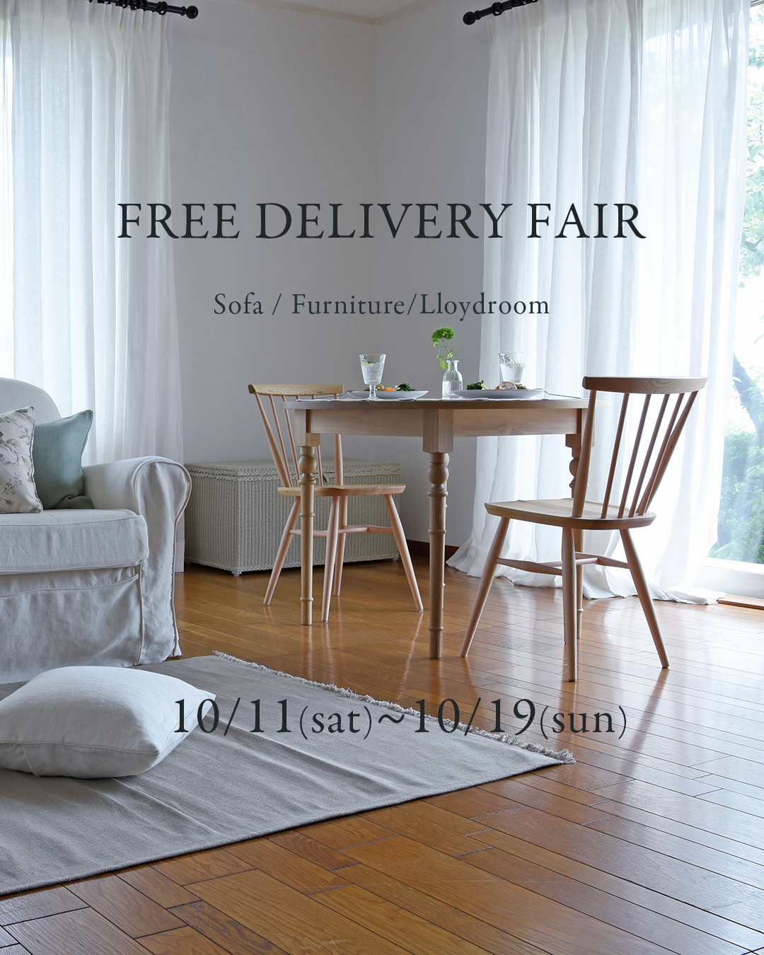 期間中は定番のオリジナルパイン家具やオーク家具、コロニアルチェックソファの新規ご注文が送料無料となります。
