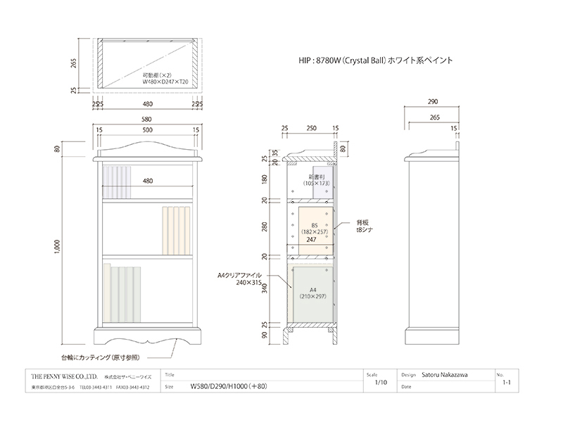 一台はお子様のお部屋で使用する小ぶりなブックシェルフ。こちらはホワイト系ペイントのご要望。