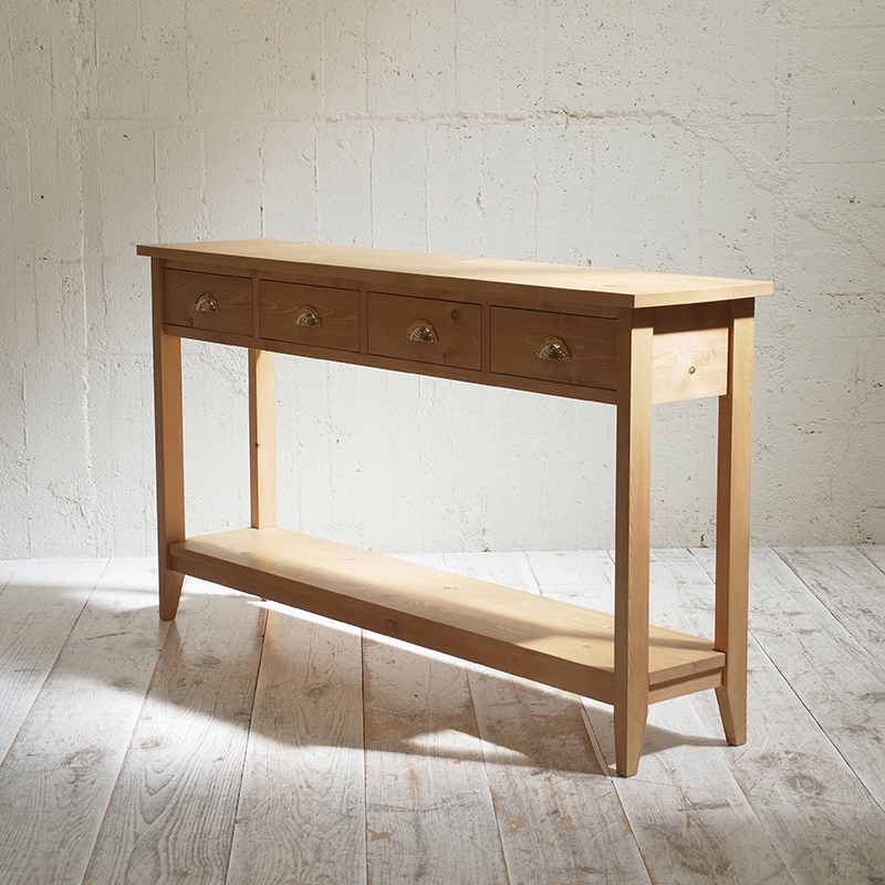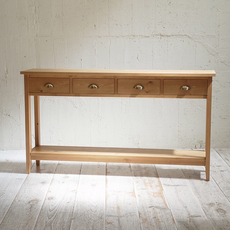 幅160cmで奥行き36cm、高さ88cmの引出しと足元に棚のあるコンソールテーブルを製作しました。