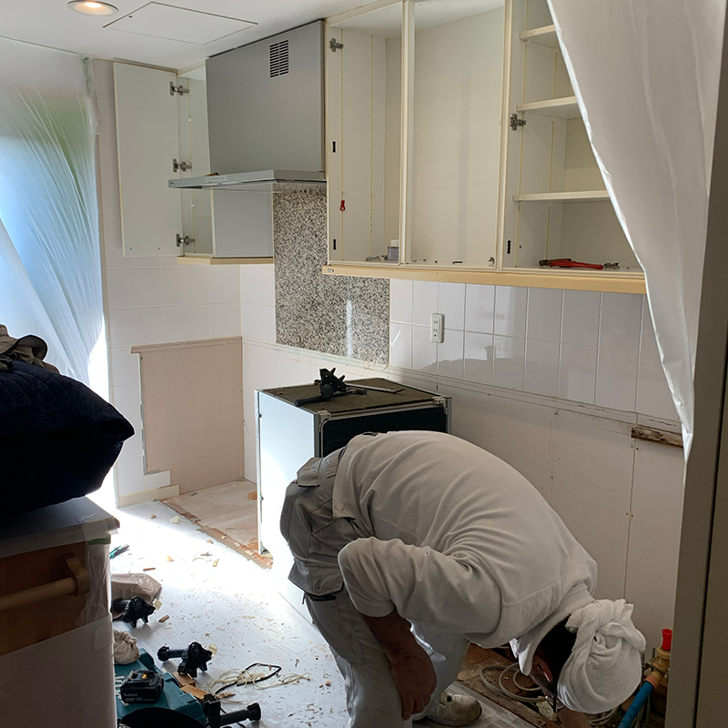 今回の工事の流れはまず既存キッチンの解体・撤去から。