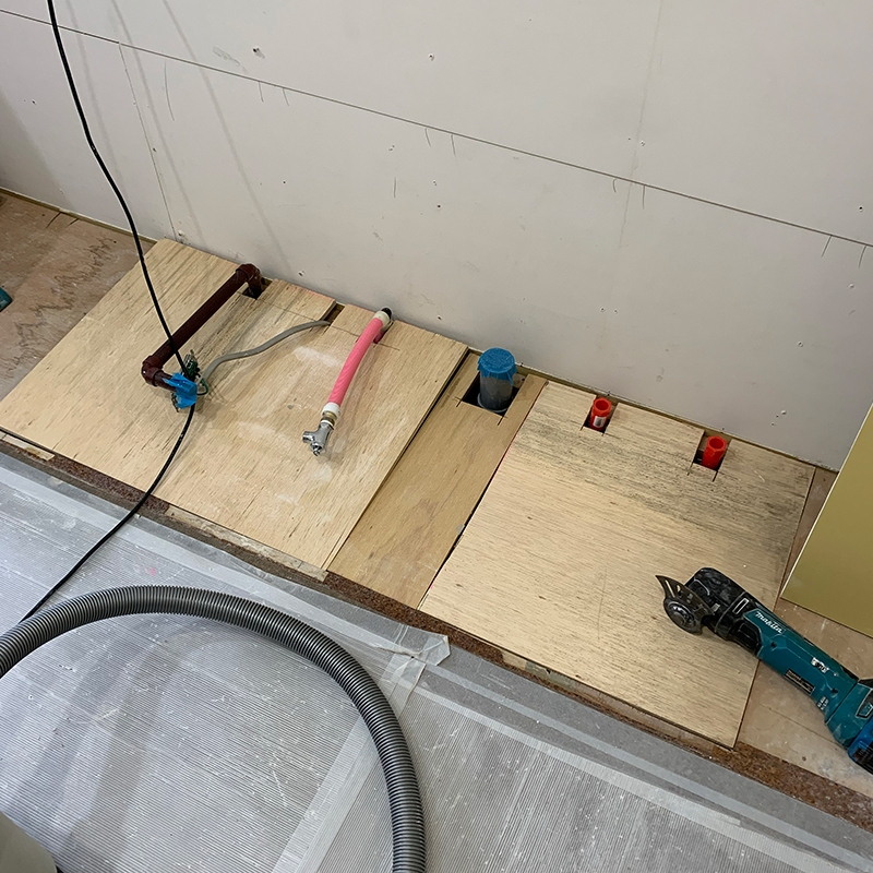 最後にクロスを仕上げて水洗器具などもろもろセットしたのちに試運転、各部点検チェックして完成です。