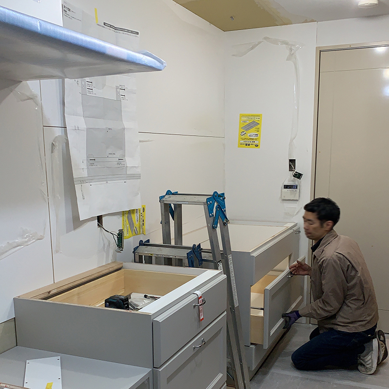 キッチン本体を設置して