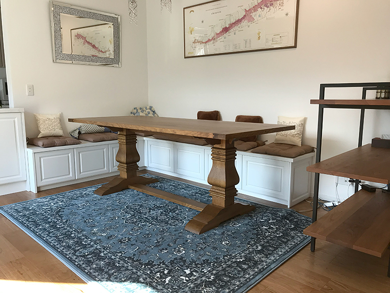 濃い染色で仕上げたり、エイジング加工をしたり、お好みの天板サイズと塗装仕上げでお作りいたします。