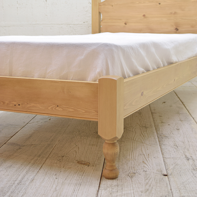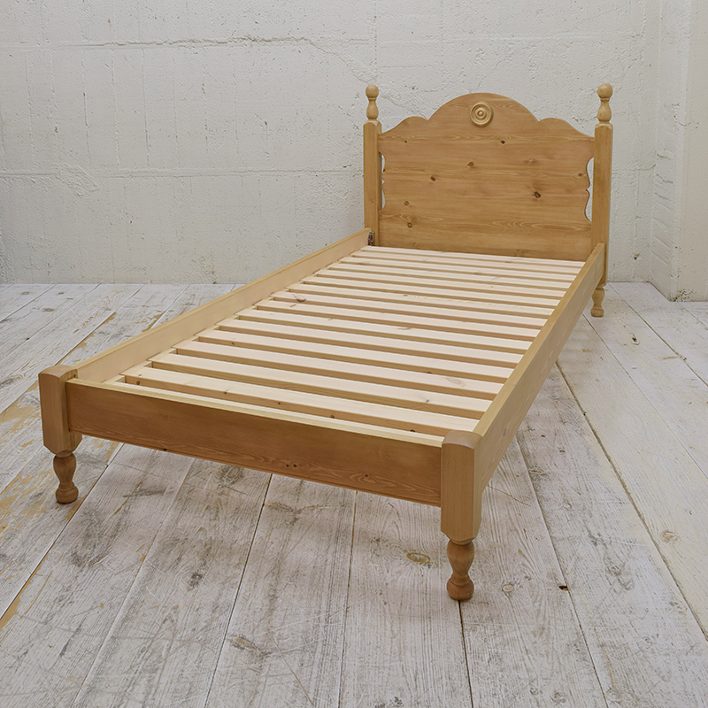 無垢のパイン材を使用したスノコ状の床板は従来の12本から16本に増えてポケットコイルマットにも対応。